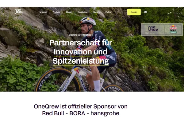 OneQrew steigt in Radsport-Sponsoring ein und ist nun Partner des Profi-Radsportteams Red Bull – Bora – hansgrohe. – © Screenshot oneqrew.com (Stand 22.08.2024)