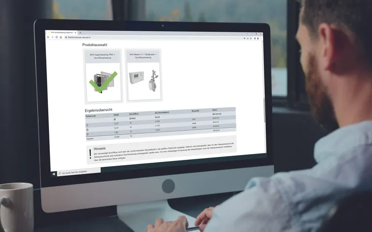 Nach Eingabe einiger Basisdaten zur Installation und zu den Leitungsabschnitten errechnet das Tool die notwendigen hydraulischen Daten für den geforderten, gebäudespezifischen Wasseraustausch wie z. B. Durchfluss und Spüldauer. Auf Basis dieser Berechnung werden dem Nutzer direkt geeignete Spültechnik-Produkte vorgeschlagen. Das gilt auch für Installationen mit Löschwasserübergabe.