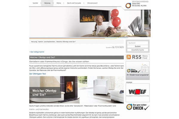 Zudem erhält der Kunde zu seinem Typenprofil aufbereitete Informationen, wie er seinem persönlichen Traum vom Ofen ein Stückchen näher kommt. Die Erläuterungen schließen jeweils mit dem Verweis auf kompetente Ansprechpartner – also den Ofen- und Luftheizungsbauer – ab. Der nachgeschaltete Link zur Handwerkersuche führt den Verbraucher zum Fachbetrieb in seiner Nähe.