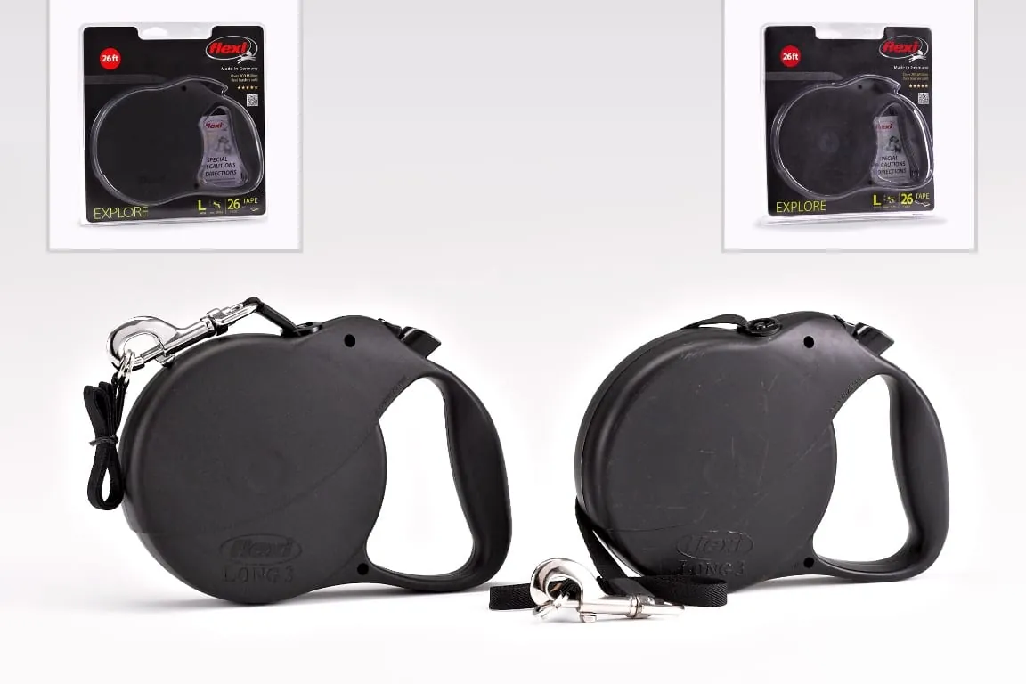 1. Preis 2017: Links die Roll Hundeleine „flexi Explore L“ von flexi-Bogdahn International, rechts die Fälschung, die u.a. über „amazon.com“ vertrieben wurde.