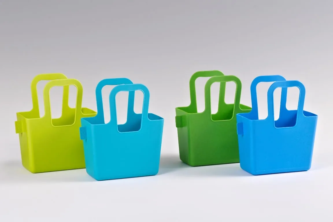 Links die Tasche „Taschelini“ von Koziol, rechts das chinesische Plagiat, das von der indonesischen Firma „TOKYO 1, Japan Houseware“ vertrieben wird.