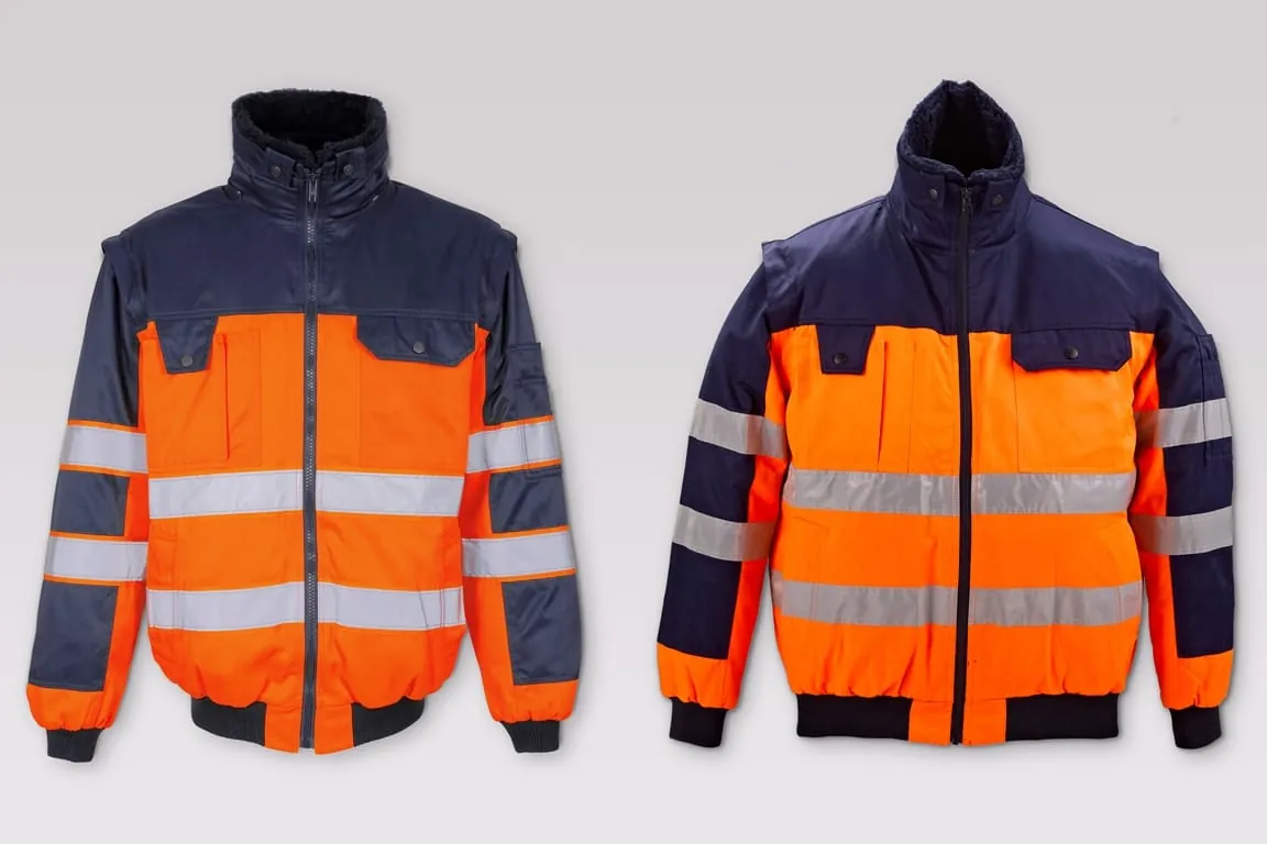 Links die Pilotjacke „Mascot Safe Image“ von Mascot International, rechts das schweizerische Plagiat der Firma rukka AG, das ausschließlich in der Schweiz vertrieben wird.