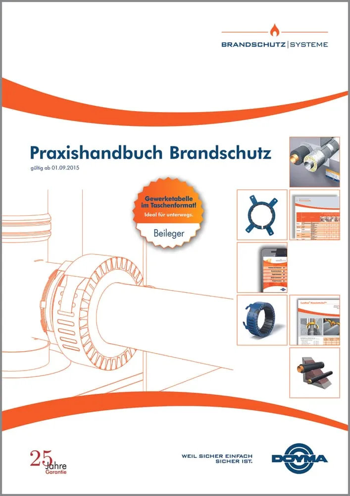 Demnächst stellt Doyma sein komplett überarbeitetes und erweitertes Praxishandbuch Brandschutz vor. Die Gewerketabelle liegt erstmals zusätzlich auch als Mini-Folder im Format A7 bei.