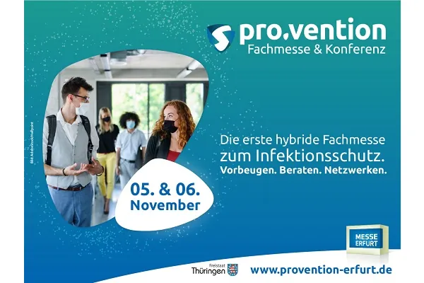 Die erste Fachmesse mit begleitender Konferenz für Infektionsschutzmaßnahmen pro.vention wird vom 5. bis 6. November 2020 in Erfurt stattfinden und befasst sich mit Schutzmaßnahmen gegen Corona – ein Messeschwerpunkt ist das Desinfizieren von Oberflächen und Lüftungssystemen.