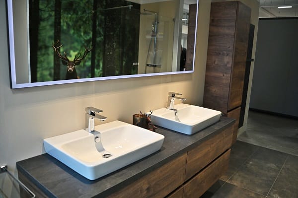 Die Besonderheit ist der so genannte Marktplatz in der Mitte der Ausstellung. Ob Präsentation von Neuheiten oder Trends, Events oder Aktionen: Hier soll es für die Besucher immer etwas zu entdecken geben. Zu sehen sind aktuell beispielsweise Echtholzmöbel in Kombination mit Stahlbecken – durch 60 % weniger CO2-Ausstoß bei der Produktion zeigen diese Produkte, wie Nachhaltigkeit im Sanitärbereich umsetzbar ist. Frühwald: „Wir können mehr als Bad, daher beherbergt die neue Ausstellung auch ganz bewusst das Thema Heizung.“ Vor Ort können sich Besucher auch über intelligente und nachhaltige Heiztechnik informieren.