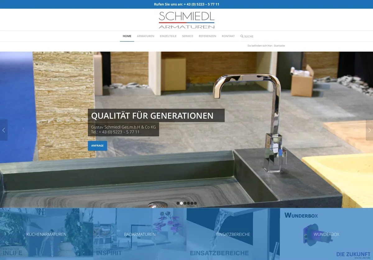 „Unsere neue Website soll den Informationsbedarf unserer Kunden und Partner lückenlos abdecken können“, das ist der Auftrag von Oliver Anker, dem Geschäftsführer von Schmiedl Armaturen. „Die Websiteinhalte werden auf allen Endgeräten optimal dargestellt. Daneben informieren wir unsere Kunden auch regelmäßig mit Hilfe eines neu eingerichteten Newsletter Service. Laufende Updates über Produktinnovationen und Designs bieten einen wichtigen Mehrwert in der Kommunikation mit unseren Installations- und Sanitärausstattungspartnern“, so der Geschäftsführer.