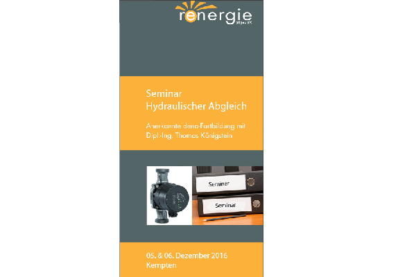 Ab 1. Januar 2017 werden neue Heizungsanlagen nur noch dann gefördert, wenn ein hydraulischer Abgleich nachgewiesen werden kann. Auf genau diese Anforderung bereitet der Verein renergie Allgäu mit einem zweitägigen dena-Fortbildungsseminar vor.