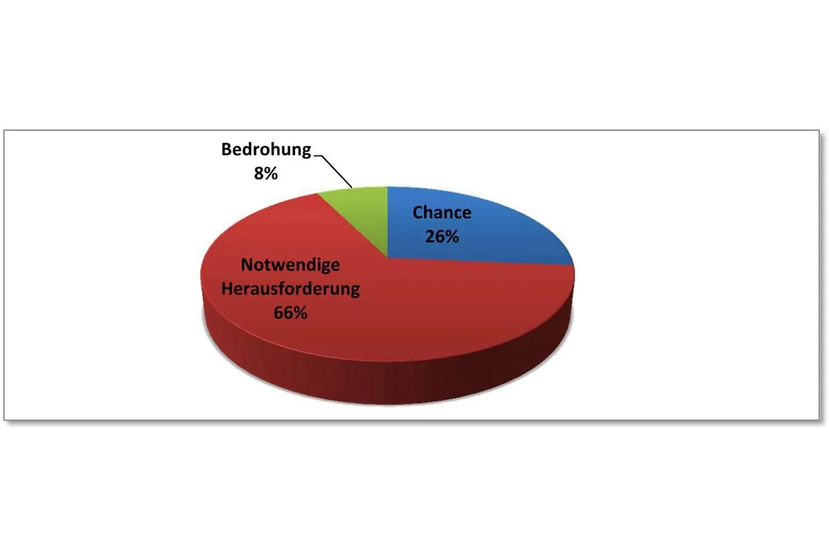 Insgesamt antwortete knapp die Hälfte der Befragten, dass sie bereits Schritte eingeleitet habe, digitale Geschäftsprozesse einzuführen. Mehr als die Hälfte (55 %) plant, in Zukunft Investitionen in die Digitalisierung des eigenen Unternehmens zu tätigen. Hierbei wird der durchschnittliche Investitionsbedarf mit ca. 21.000 Euro pro Betrieb für die nächsten drei Jahre angegeben. Ein gutes Viertel der Betriebe empfindet die Digitalisierung als Chance, Zweidrittel nehmen die Herausforderung notwendiger Weise an. Weniger als 10 % empfinden die fortschreitende Digitalisierung für ihren Betrieb als Bedrohung.