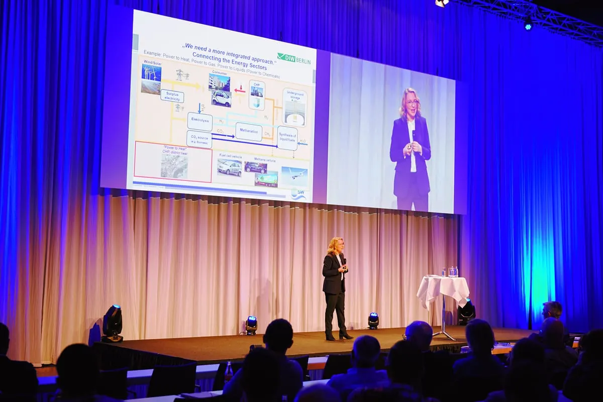 Mit düsteren Zahlen startete Keynote-Speakerin Prof. Dr. Claudia Kemfert (Leiterin der Abteilung Energie, Verkehr und Umwelt am Deutschen Institut für Wirtschaftsforschung und Professorin für Energieökonomie und Nachhaltigkeit an der Hertie School of Governance) ihren Vortrag: „Wenn Europa so weitermacht wie bisher, steuert die Erde auf eine Erwärmung von 4–6 °C anstelle der geforderten <2 °C zu.“ Ziel ist die Umsetzung des 50-80-90 Modells, das heißt 50 % weniger Primärenergie, 80 % Nutzung von Strom aus erneuerbaren Energien und 90 % Treibhausgasminderung. Wichtige Faktoren für die Erreichung dieses Zieles sind der Kohleausstieg, die Verkehrs- sowie die Gebäudeenergiewende – alle drei untrennbar miteinander verknüpft. Dabei ist die Abkehr von fossilen Energieträgern essenziell. Stichwort hier ist die Besteuerung von CO2, die aktuell heiß diskutiert wird und Investitionen in klimaschädliche Strategien unökonomisch machen würde. „Mit der Energiewende und der Investition in Energieeffizienz entstehen auch enorme wirtschaftliche Chancen wie Wettbewerbsvorteile, Arbeitsplätze und sinkende Energiekosten. Dafür müssen jedoch klare Signale aus der Politik kommen: konsequente Verfolgung der Klimaschutzziele sowie der Abbau umweltschädlicher Subventionen, die durch die Förderung umweltfreundlicher Maßnahmen zu ersetzen sind“, fordert Kemfert. „Eine kluge Energiewende ist vergleichbar mit einem Marathon, an dem wir alle teilnehmen. Es ist höchste Zeit für den Startschuss, wenn wir das Ziel <2 °C noch erreichen wollen.“