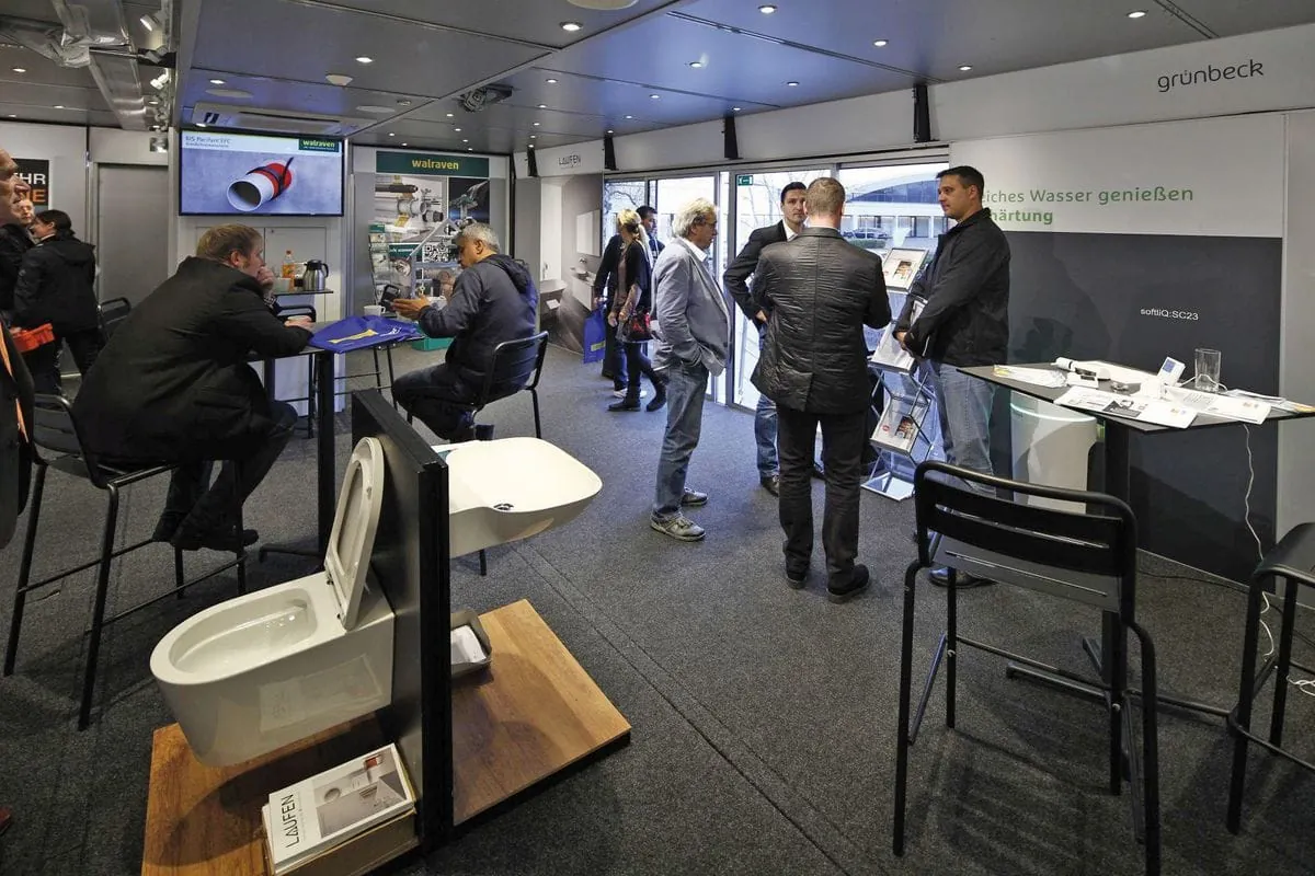 Beratung im Truck, in den Niederlassungen Fachvorträge und vertiefte Information – so war die Rundtour von Richter+Frenzel organisiert. Experten verschiedener Partnerfirmen und E-Business-Berater von R+F gestalteten das Programm. Neues über barrierefreie Bäder war zu erfahren, Einzelheiten zum ErP-Label oder – um ein weiteres Beispiel zu nennen – die Wasseraufbereitung im Zeitalter des „Internets der Dinge“.