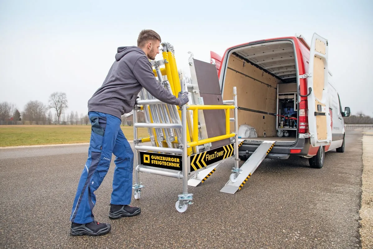 Im Rahmen einer Roadshow durch die gesamte Bundesrepublik präsentiert die Günzburger Steigtechnik GmbH gemeinsam mit ihren Partnern aus dem Fachhandel das brandneue Ein-Personen-Gerüst FlexxTower.