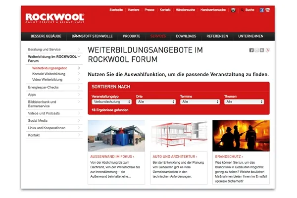 So vielfältig wie das Bauwesen, so individuell sind die Fragestellungen aller mit der Bauwirtschaft befassten Spezialisten und ihr Schulungsbedarf. In den Rockwool-Seminaren, die in hauseigenen Schulungszentren an den Standorten Gladbeck, Neuburg und Flechtingen durchgeführt werden, finden sich daher Angebote zu Themengebieten wie Brand-, Schall-, Wärme- und Feuchteschutz. Praxisnah geschult wird hierbei zu Fragen der Planung, der Ausführung von Dämmmaßnahmen aber auch Aspekten der Erhaltung, Ertüchtigung und Sanierung von Gebäuden. Fachkompetente Referenten vermitteln alles Wissenswerte rund um das Thema Dämmung.