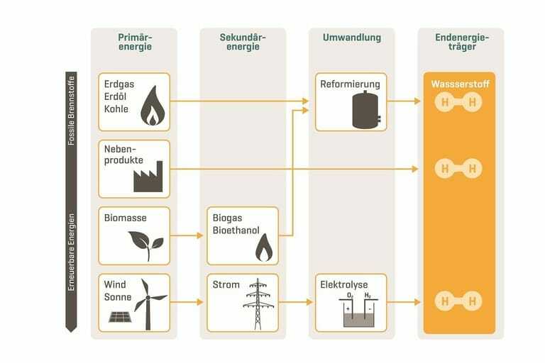 Die Entwicklung einer Infrastruktur, die mit Wasserstoff klimaschonend bedient werden kann, ist in vollem Gange. Das Element eignet sich für den Einsatz in Brennstoffzellen, um Strom und Wärme zu generieren. Alternativ kann Strom in chemischer Form in Wasserstoff länger und besser als bislang in Batterien gespeichert werden.