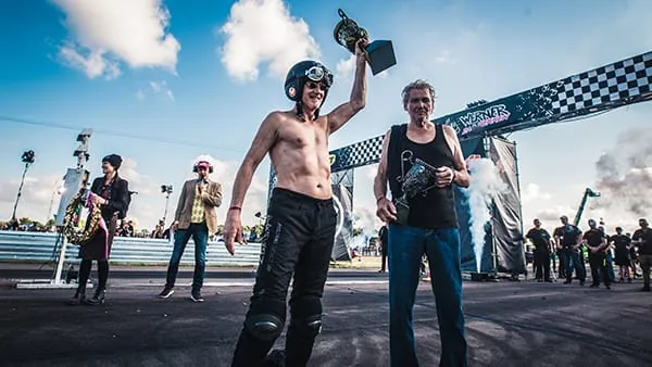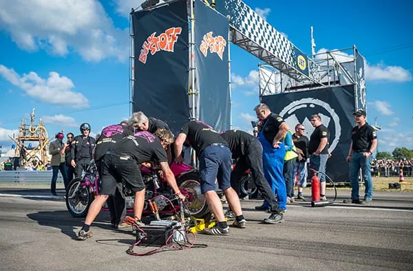 Bršsel feiert am 02.09.2018 auf Europas gršsstem Motorsportfestival „Werner – Das Rennen“ auf dem Flugplatz Hartenholm (Schleswig-Holstein) auf der rennstrecke seinen sieg. Das Festival findet vom 30.08. bis zum 02.09.2018 in Hartenholm statt.