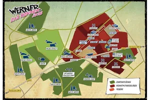 Die 50.000 Besucher des Werner Rennen 2018 konnten sich auf insgesamt sechs Camps verteilen, die nach Themen aufgebaut waren. Der Veranstalter wollte es Festivalbesuchern so leichter machen Gleichgesinnte zu finden. Biker waren im Schüsselcamp zum Beispiel ganz unter sich und nah bei ihren Maschinen. Wer es ruhiger mochte und Familie dabei hatte, war im Biotop gut aufgehoben. Und auf dem Gas-Wasser-Scheiße-Camp konnten sich Installateure treffen – egal, ob zum Fachsimpeln oder um einen Schwank aus der Lehrzeit zu erzählen. Wer beim Camping die Wahl hatte, hatte also die Qual: