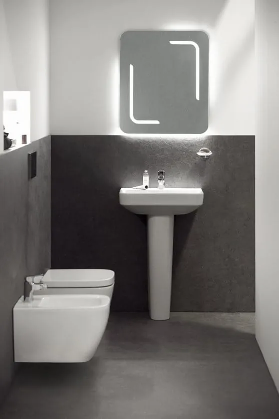 Bidets, die für jedes Badezimmer geeignet sind. Möbelwaschtische werden im Set mit fünf ausgewählten Oberflächen der Kollektion kombiniert.