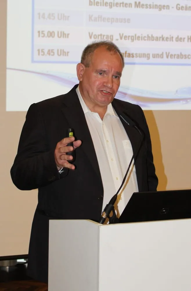 Winfried Jung vom GMS-Mitgliedsunternehmen Flühs stellt die Ergebnisse GMS-Projekt „Härteprüfungen“ vor.
