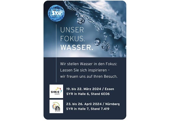 Mit Fokus auf Montagefreundlichkeit und Systemeffizienz will die Hans Sasserath GmbH & Co. KG auf der SHK+E Essen und der IFH/Intherm Nürnberg zeigen, wie Syr-Technik Sie das Arbeitsleben von Installateuren vereinfacht. Durch die Fähigkeit, unterschiedliche Systeme miteinander zu verknüpfen, werden die Syr-Produkte modernen Ansprüchen bei der Hausinstallation gerecht.