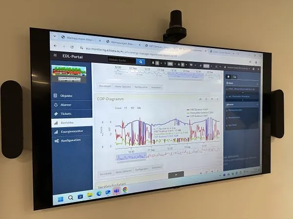 Dafür hat er Wärmepumpen unterschiedlicher Marken-Hersteller einfach vor seinem Firmengebäude installiert – sozusagen im Vorgarten. Und alle hat er auch in Betrieb genommen. Der Vorteil für das Unternehmen – einmal davon abgesehen, dass es günstig warm wird in der Firma: Die eigenen Mitarbeiter bauen die Geräte ein, beobachten und bewerten sie im Betrieb und kennen dadurch die Produkte ganz genau – ihre Stärken und auch ihre Schwächen. Und auf eindrucksvollen Charts kann Scheel die Produkte direkt beim Wärme pumpen vergleichen und live dem interessierten Kunden präsentieren. Übrigens im Altbau.