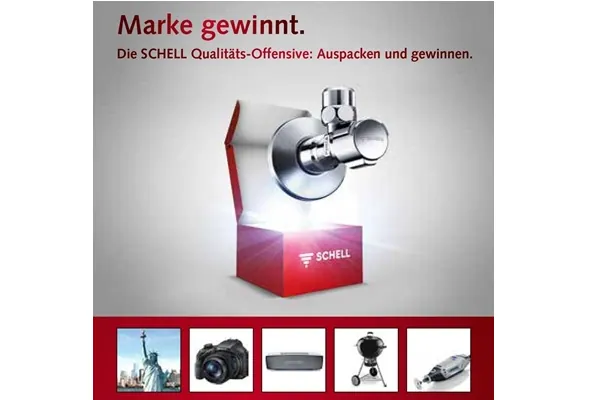Jetzt werden die Partner belohnt: Die Schell Gewinnspiel-Aktion „Marke gewinnt“ startet im Frühsommer 2016. Gewinne können bis zum 18. März 2017 eingelöst werden – leicht zu merken, denn es ist der letzte Messetag auf der ISH 2017 in Frankfurt. Insgesamt stellt Schell fast 1.000 attraktive Sofortgewinne im Gesamtwert von über 100.000 Euro zur Verfügung. Dazu gehören z.B. digitale Bridgekameras, Holzkohlegrills und Hifi-Soundsysteme.