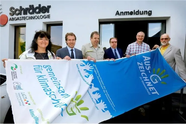 Für sein innovatives System der Abgaswärmenutzung wurde Schräder Abgastechnologie mit der Klimaschutzflagge der Landesarbeitsgemeinschaft Agenda 21 im Kreis Unna ausgezeichnet.