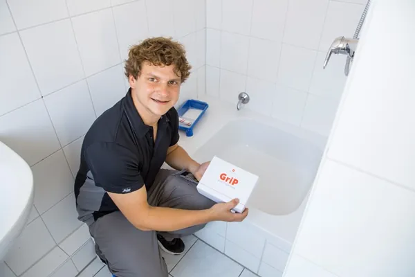Seit mehr als drei Jahren arbeitet Martin Bunz nun mit dem Produkt GriP AntiRutsch des Schweizer Herstellers GriP Safety Coatings AG. Der gelernte Schreiner arbeitet als Monteur bei der Repabad GmbH in Wendlingen am Neckar und baut die Oberflächenbeschichtung direkt vor Ort bei Kunden ein. Wie die unkomplizierte Montage funktioniert, zeigt er Schritt für Schritt in der Anleitung.