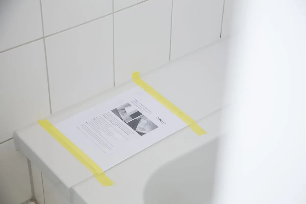 … Auch ein Hinweiszettel an der Badezimmertüre – am besten an der Türklinke – ist wichtig, vor allem wenn andere Handwerker und Gewerke in den Räumen zu Gange sind. Mit Datum wird angezeigt, ab wann die Fläche wieder benutzungsbereit ist.