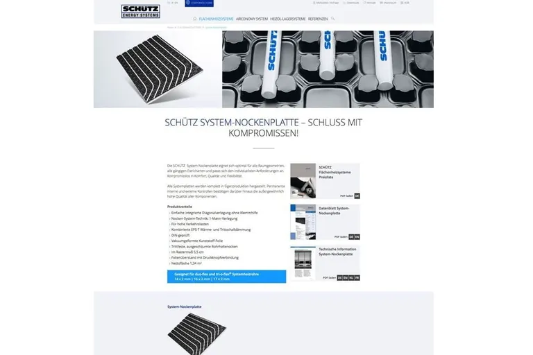 Über die eigene Domain von Energy Systems (www.schuetz-energy.net) haben Heizungsbauer und Fachplaner nun den direkten Einstieg auf die Produktbereiche Flächenheizung und Heizöl- und Lagerbehälter.