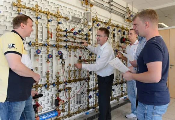 Praktische Anwendungen sind ein wesentlicher Bestandteil der Buderus Schulungen – beispielsweise an der Hydraulikwand. – © Buderus