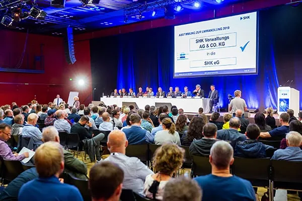 Der erste Schritt ist die bereits beschlossene Umwandlung der SHK Verwaltungs AG & Co. KG in eineeG mit Rückwirkung zum 01.01.2019. Der zweite Schritt folgt zwölf Monate später: die Aufwärtsverschmelzung der SHK Einkaufs und Vertrieb AG in eine eG.