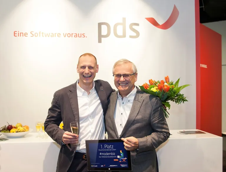 Die Kooperation von pds, Microsoft, Wortmann und pds-Partnern hatte mittelständische Unternehmen dazu aufgerufen, sich für den IT-Preis #modernbiz zu bewerben. Es lockte ein IT-Paket in Höhe von 54.000 Euro. Das Ziel: mittelständische Unternehmen zu digitalisieren und auf dem Weg in die mobile Zukunft zu begleiten. Auf der ISH in Frankfurt präsentierte pds den Sieger in Kategorie eins des Wettbewerbs