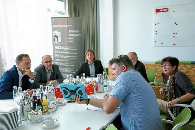 „Aus dem Blickwickel des Herstellers ist nicht nur das Entwickeln und Testen einer solchen Technologie wichtig für uns, sondern auch die Rückmeldung von Langzeitnutzern“, sagte Dr. Thomas Beck, Teamleiter Key Account Energieversorgung bei Viessmann Deutschland, vor dem Gespräch am 9. Juni in der Konzernzentrale von E.ON. Dorthin hatte Dr. Martin Endress, der den Bereich Bestandskunden bei E.ON leitet, zwei Gewinner eingeladen: Monika Oesinghaus und ihren Sohn Frank aus dem ostholsteinischen Bad Malente sowie Anton Plabst aus der oberbayerischen Gemeinde Poing.