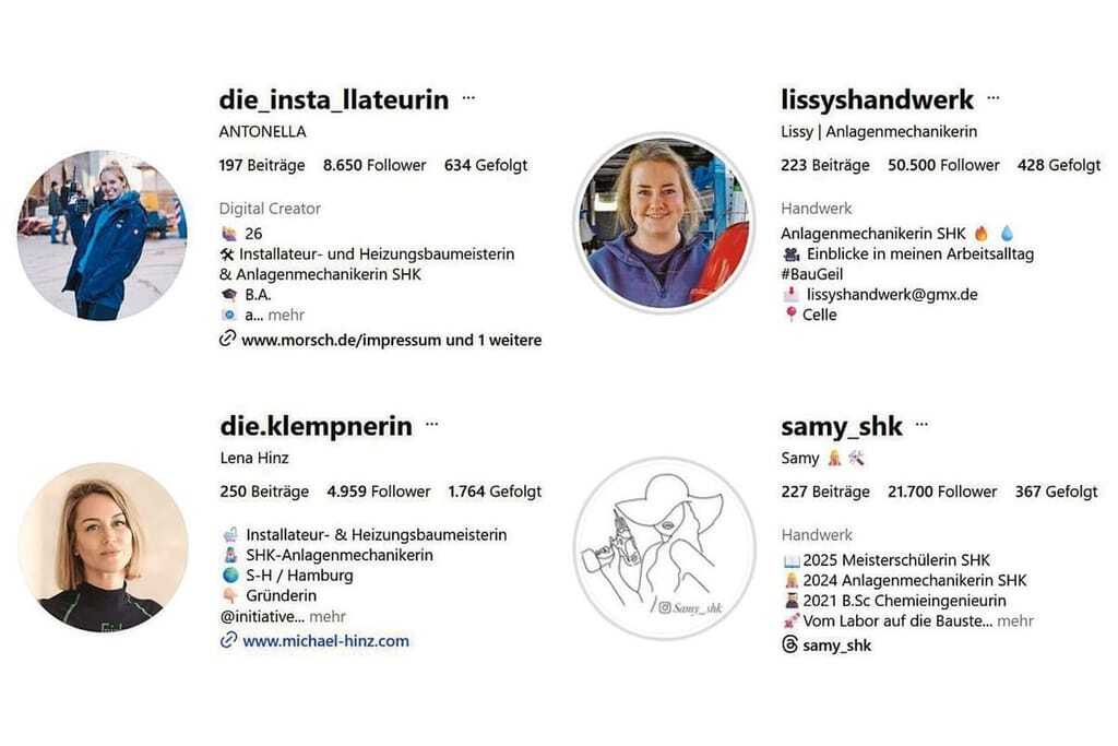 Ausbildung im SHK-Handwerk zu begeistern. – © Screenshots www.instagram.com (Stand 16.10.2025)