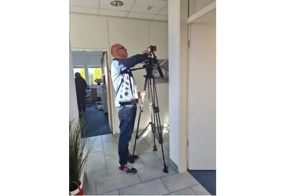 Regisseur Uwe Kassai beim Dreh beim Silohersteller A.B.S. in Ostburken. – © A.B.S. Silo- und Förderanlagen GmbH