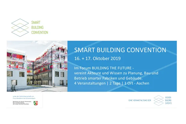 Am 16. und 17. Oktober 2019 veranstaltet der Aachen Building Experts e. V. (ABE) zum zweiten Mal die „Smart Building Convention – Innovative Gebäudetechnik planen, bauen und betreiben“.