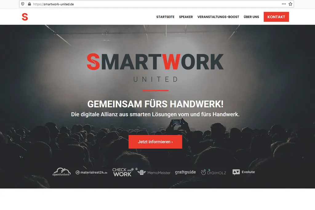 SmartWork-United: Gemeinsam fürs Handwerk. Eine digitale Allianz aus smarten Lösungen vom und fürs Handwerk. – © Screenshot https://smartwork-united.de/ (Stand 08.07.2021)