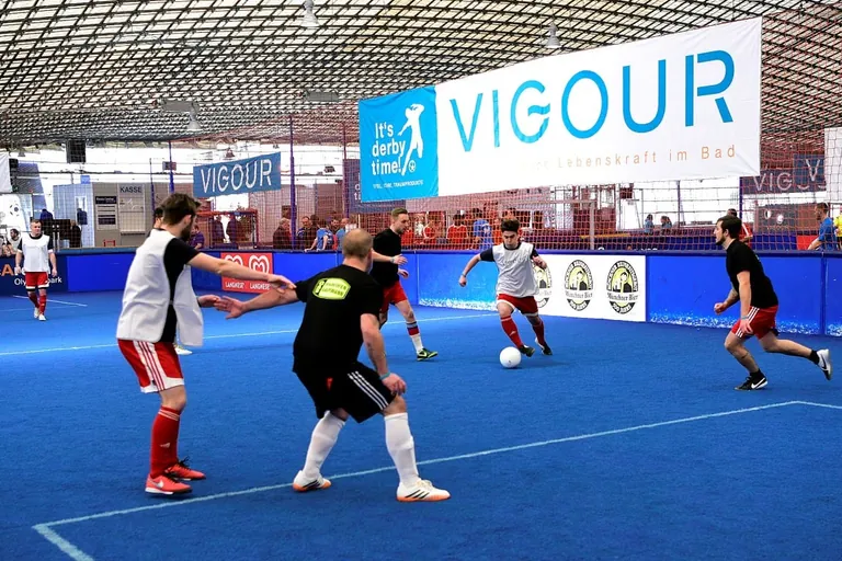 Fachhandwerksbetriebe aus München und Umgebung dribbelten durch die SoccArena des Olympiaparks. Krachende Beats begleiteten jede „Bude“ beim Auftakt des Vigour Cups. „Das Ambiente ist klasse, die Veranstaltung ist super organisiert und alle spielen fair“, sagte Sebastian Beer, Geschäftsführer der Manfred Himmelreich & Co. GmbH, die unter dem Namen „FC Himmelfahrt“ aufgelaufen war.