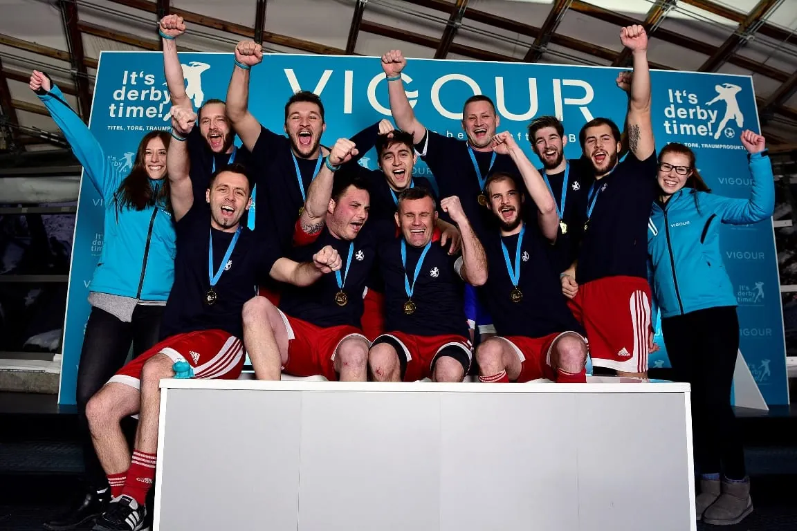 „Berlin, Berlin, wir fahren nach Berlin“, schallt es durch die Münchner Arena. Junge Männer in roten Hosen hüpfen singend im Kreis. Begleitet von Heldenmusik feiern sie ihren Triumph. Jubelszenen am 21. Januar 2017 beim Vigour Cup. Die Otto Hermann GmbH schnappt sich den ersten Titel und fährt zum Finalturnier nach Berlin.