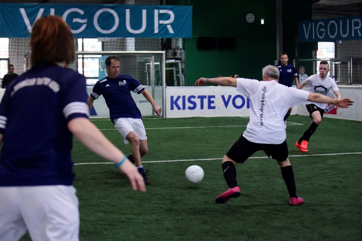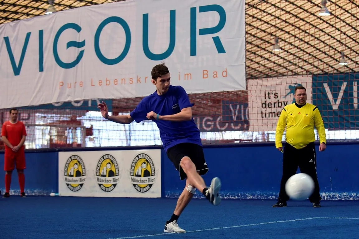 Fachhandwerksbetriebe aus München und Umgebung dribbelten durch die SoccArena des Olympiaparks. Krachende Beats begleiteten jede „Bude“ beim Auftakt des Vigour Cups. „Das Ambiente ist klasse, die Veranstaltung ist super organisiert und alle spielen fair“, sagte Sebastian Beer, Geschäftsführer der Manfred Himmelreich & Co. GmbH, die unter dem Namen „FC Himmelfahrt“ aufgelaufen war.