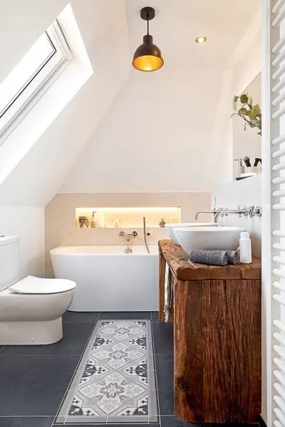 - Größe: Natürlich sind die Ausmaße des Raumes ganz entscheidend. Dessen Schnitt und Begebenheiten, ob Dachgeschoss, mit oder ohne Fenster und die z.B. daraus resultierende Fliesenmenge sind individuell und beeinflussen den Preis maßgeblich.