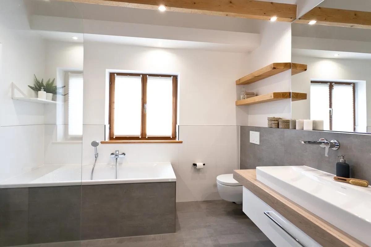 Ausstattung: Von den wichtigen Sanitärobjekten wie Toilette, Waschbecken und Badewanne bis hin zu den Accessoires werden in einem Badezimmer zahlreiche Produkte und Materialien verbaut. Im Einzelnen sind das:
