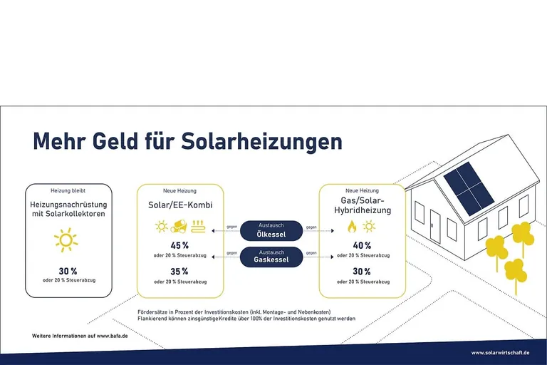 Grafik zu den aktuellen Förderkonditionen bei solarer Heizungsmodernisierung. – © Bundesverband Solarwirtschaft e. V.