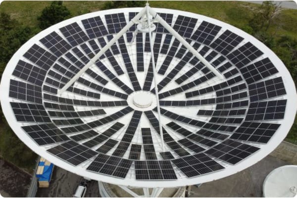 Aufgrund der komplexen Ausrichtung und Neigung der Solarmodule auf den Satellitenschüsseln drohten Verschattungen und unterschiedliche Neigungswinkel, die Effizienz der Solaranlage zu beeinträchtigen. Herkömmliche Strang-Wechselrichter reduzieren die Gesamtleistung der Solaranlage auf das Niveau des leistungsschwächsten Moduls im Strang. Ein verschattetes Modul kann somit den Energieertrag erheblich verringern. Daher kam die DC-optimierte Wechselrichterlösung von SolarEdge mit Leistungsoptimierern zum Einsatz. Diese wurden an der Unterseite jedes Solarmodulpaares angebracht. So kann die Solaranlage die Auswirkungen des Modul-Mismatches auf die Satellitenschüsseln abmildern. Zudem lassen sich so die Stromproduktion steigern und die Wirtschaftlichkeit des Projekts sicherstellen.