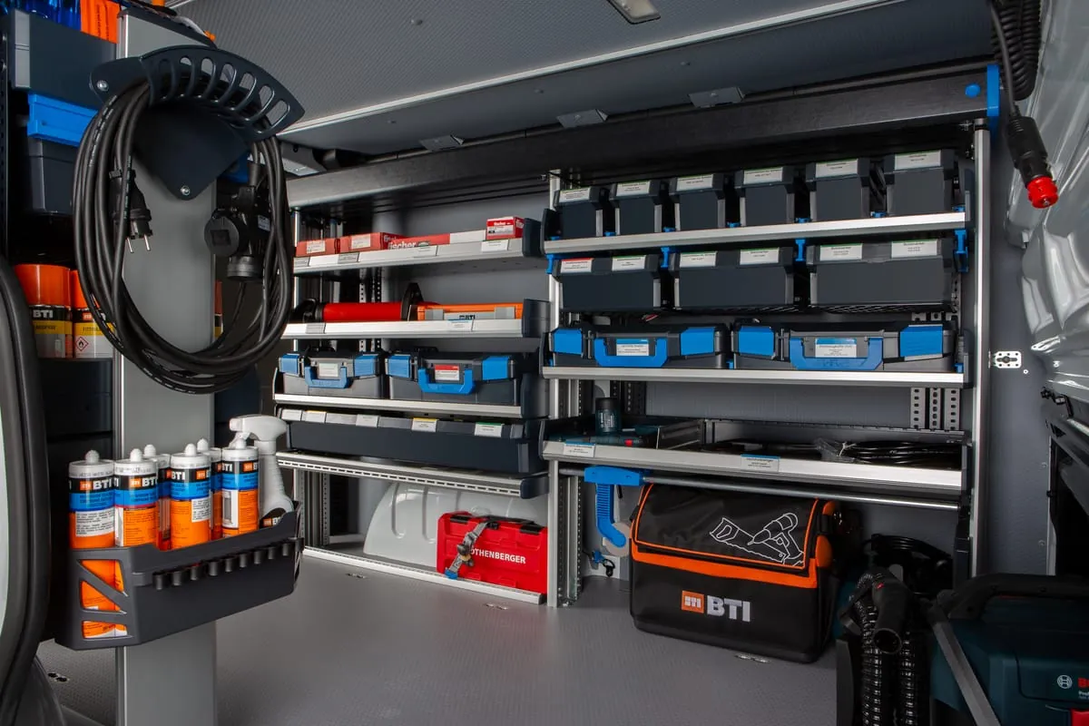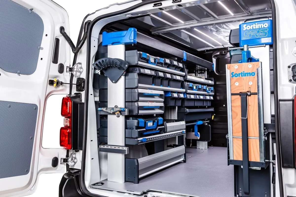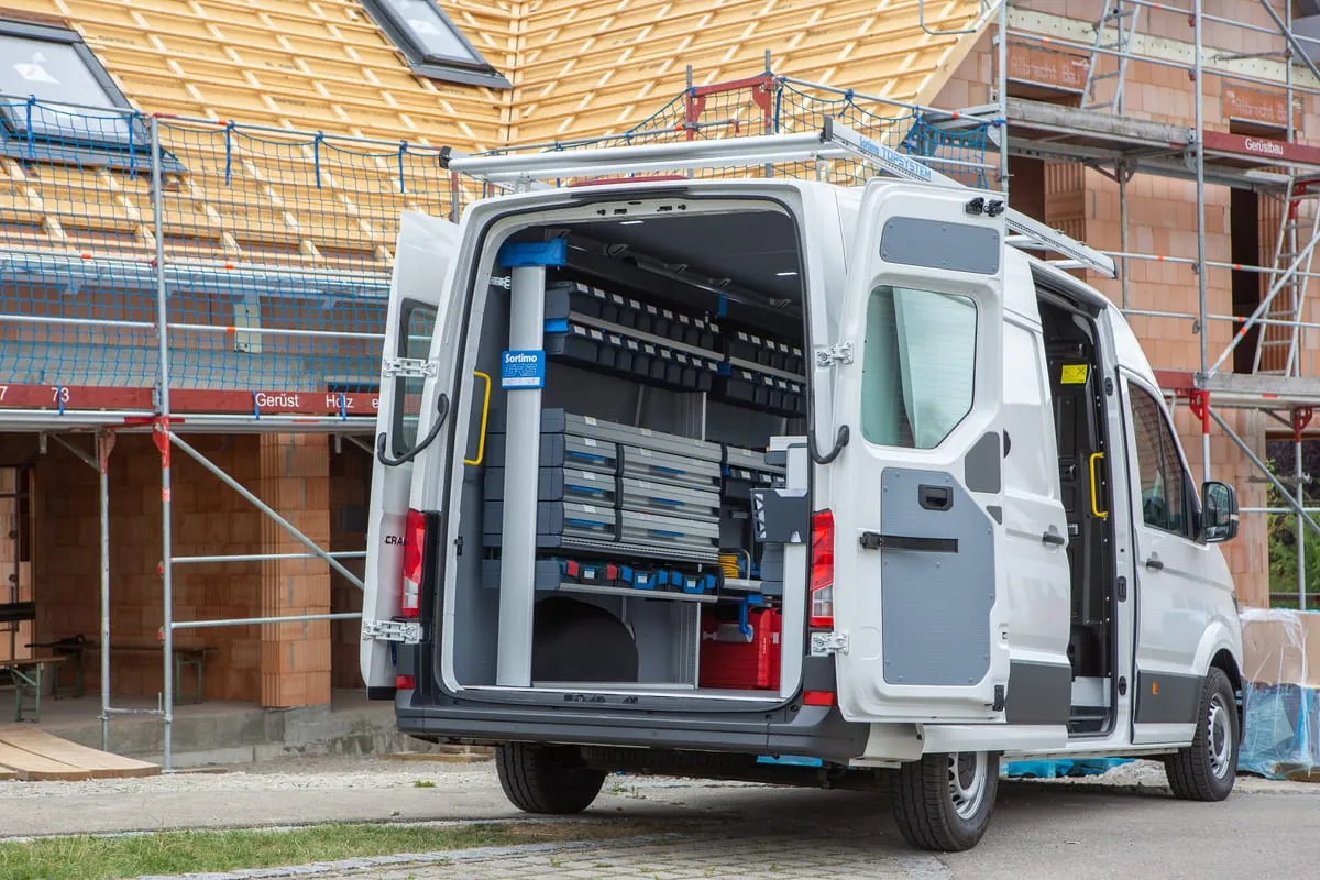 Mit dem neuen SR5-Regalsystem ermöglicht Sortimo Handwerkern, Servicetechnikern und Flottenkunden Arbeitsplatzorganisation auf engstem Raum. Dank SR5 lassen sich nach Herstellerangaben betriebsübergreifende Prozesse weiter optimieren, Workflows zielgerichteter und effizienter gestalten, was zu einer Produktivitätssteigerung im Arbeitsalltag beiträgt. „Die Fahrzeugeinrichtung überzeugt aufgrund ihrer schmalen Abmessung, da sie den zur Verfügung stehenden Laderaum im Transporter optimal nutzt“, erklärt Sortimo. Durch breite Individualisierungsmöglichkeiten über den Fahrzeugeinrichtungskonfigurator mySortimo configuration bietet SR5 ein hocheffizientes mobiles Arbeitsumfeld sowie eine vollumfängliche Integration von Werkzeugen, Maschinen und Verbrauchsmaterialien über Systemgrenzen hinaus.