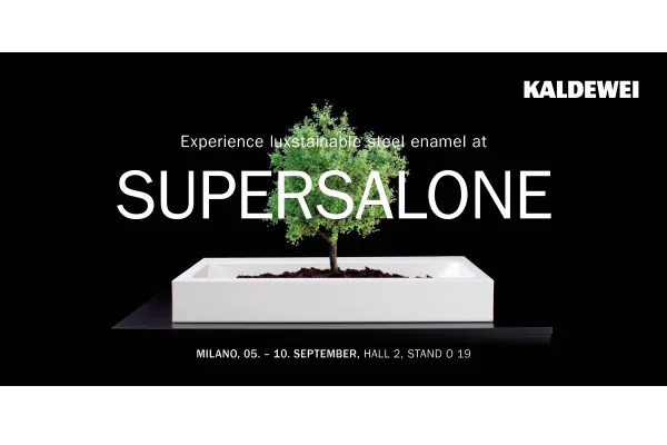 Ein „Perfect Match“ ist die thematische Ausrichtung des Supersalone mit einem Schwerpunkt auf Nachhaltigkeit und Kreislaufwirtschaft, die auch die Eigenschaften des für Kaldewei so zentralen Werkstoffs Stahl-Emaille widerspiegelt. Die kostbare Verbindung aus Stahl und Glas ist nach einem langen Lebenszyklus zu 100 % kreislauffähig. Besucher des Supersalone erwartet am East Gate beispielsweise eine Green Area. Die dort stehenden Bäume sollen mit Hilfe der Mailänder Wiederaufforstungs-Initiative „Forestami“ nach der Messe im gesamten Stadtgebiet der norditalienischen Metropole eingepflanzt werden.