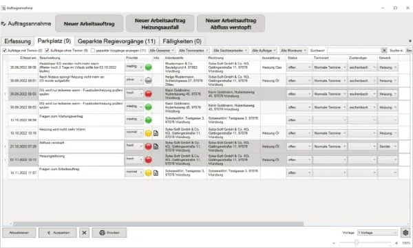Optimiert hat der Anbieter die interne Zusammenarbeit der sykasoft Module, vor allem in der neu konzipierten Auftragsannahme. 2.0. Die Software sendet Aufträge – wenn Termin, Adresse, Monteure bekannt sind – gleich an die mobilen Geräte. Sie meldet Fälligkeiten aus dem Kundendienst, so ist der Nutzer der Annahme rundum informiert. Per Drag & Drop kann der Handwerker mit dem Terminplaner kommunizieren. Die Anbindung an den Regieauftrag ist jetzt gegenseitig. Sollte ein Regievorgang nicht fertiggestellt werden können, weil z.B. Material fehlt, so kann man diesen jetzt in die Auftragsannahme parken. So hat man immer eine optimale Übersicht, und es kann nichts vergessen werden.