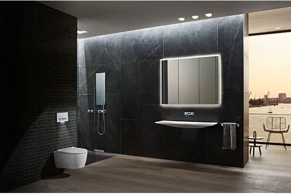 Ein Dusch-WC vereint die Funktionen eines WCs mit denen eines Bidets. Per Knopfdruck fährt ein Duscharm aus und reinigt den Intimbereich sanft mit warmem Wasser. Das neue Modell Geberit AquaClean Sela ist zusätzlich mit einer separaten, sanft reinigenden Ladydusche sowie einem dezenten Licht für die nächtliche Orientierung ausgestattet. WC-Sitz und -Deckel sind zudem mit der SoftClosing-Funktion ausgestattet: Zum Schließen werden Deckel und Sitz lediglich mit den Fingerspitzen angetippt. Für mehr Hygiene verfügt AquaClean Sela über eine spülrandlose WC-Keramik mit TurboFlush-Spültechnologie, die für eine gründliche Ausspülung der Keramik sorgt – Schmutz und Ablagerungen können sich so nicht absetzen.