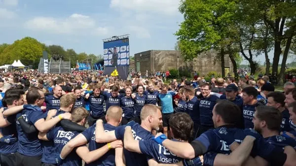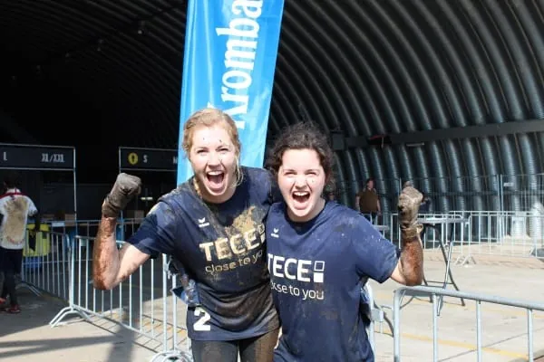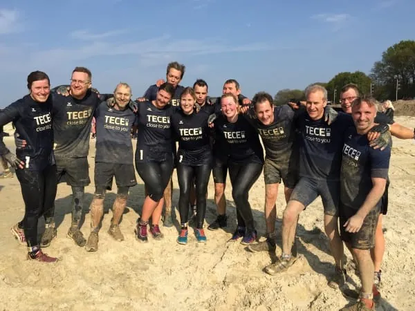 Ein Gruppenerlebnis der besonderen Art bieten die Mud Masters in Weeze am Niederrhein. Der mit Schlammlöchern gespickte Hindernislauf rund um den Airport Weeze, der früher das Flugfeld der Royal Airforce war, ist weniger ein Wettrennen. Vielmehr lassen sich die schwierigen, zum Teil aus dem Bestand der alten Truppenübungsbahn stammenden Hindernisse nur als Team bewältigen. 42 Tece-Mitarbeiter haben sich der Herausforderung gestellt.