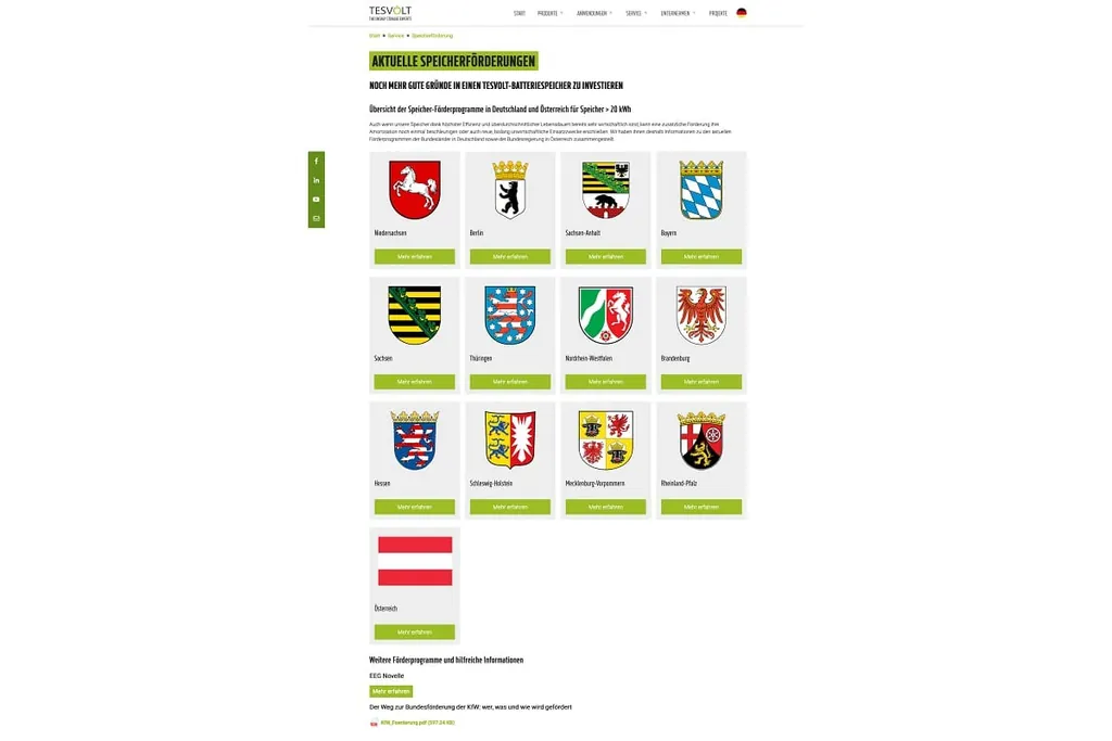 Die Online-Übersicht zu den Förderprogrammen der Bundesländer finden Sie hier: https://www.tesvolt.com/de/service/speicherfoerderung.html.