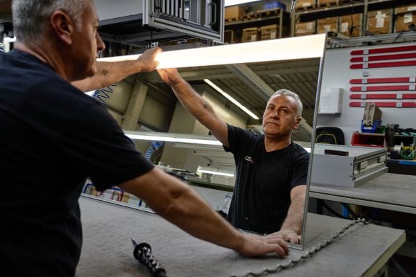 Seit 30 Jahren ist der Keuco-Standort in Gütersloh das Herz der Spiegelproduktion. Aus Erfahrung, Handwerk und Hightech entstehen hier langlebige Produkte – mit Leidenschaft für Design und Qualität „Made in Germany“.